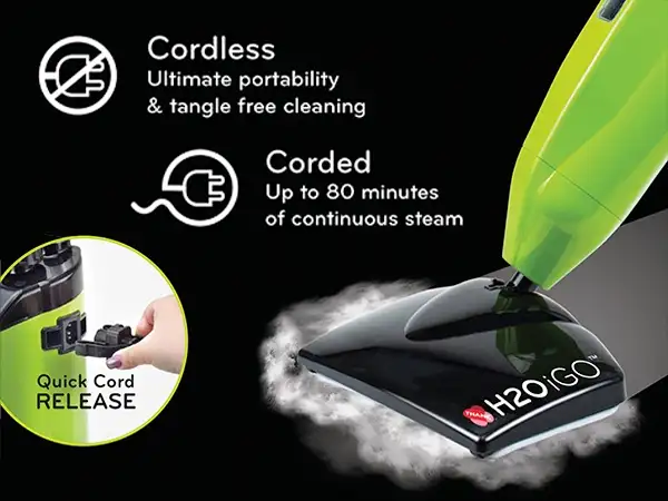 - 1 x H2O iGO™ Hybrid Steam Mop Unit with detachable Power Cord
